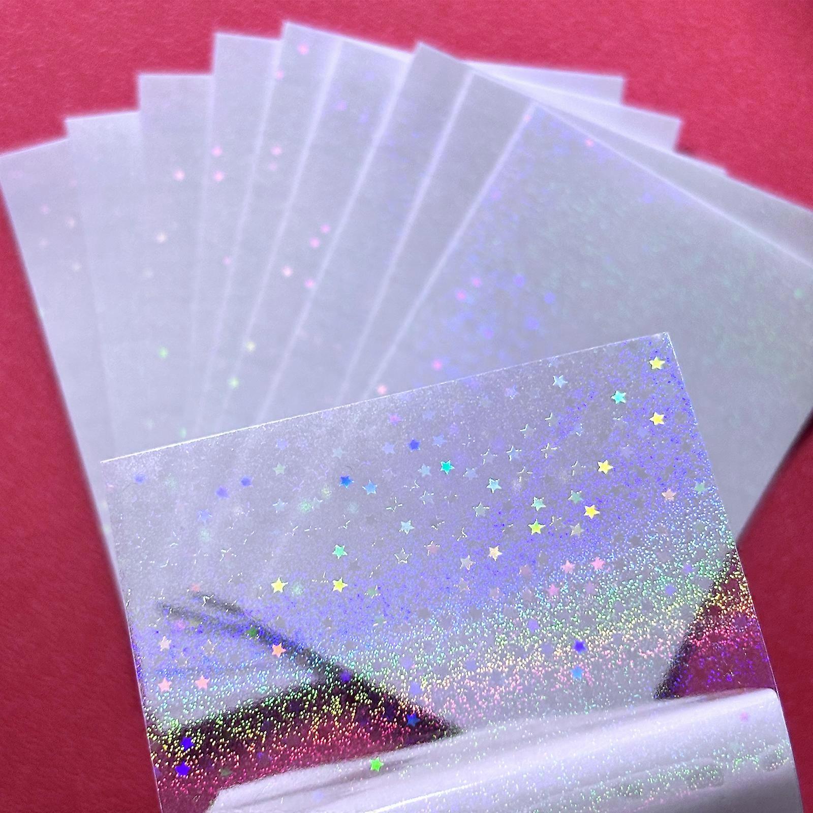 50 Sheets 4.1x2.9 Inch Holographic Cold Lamination Film Clear Overlay Lamination Sticker Self-Adhesive Waterproof Various Style