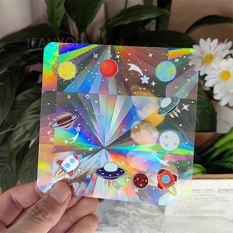 3D Rainbow Sun Catcher Wall Stickers Cat Bear Wolf Spaceship Planet Suncatcher PVC Film Self Adhesive Decal Sticker Home Decor