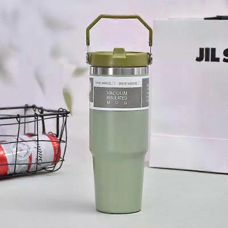 30 Oz Stainless Steel Thermos Mug Tritan Material Double Layer Vacuum Insulation Tape Handle, Perfect for Iced and Hot Drinks