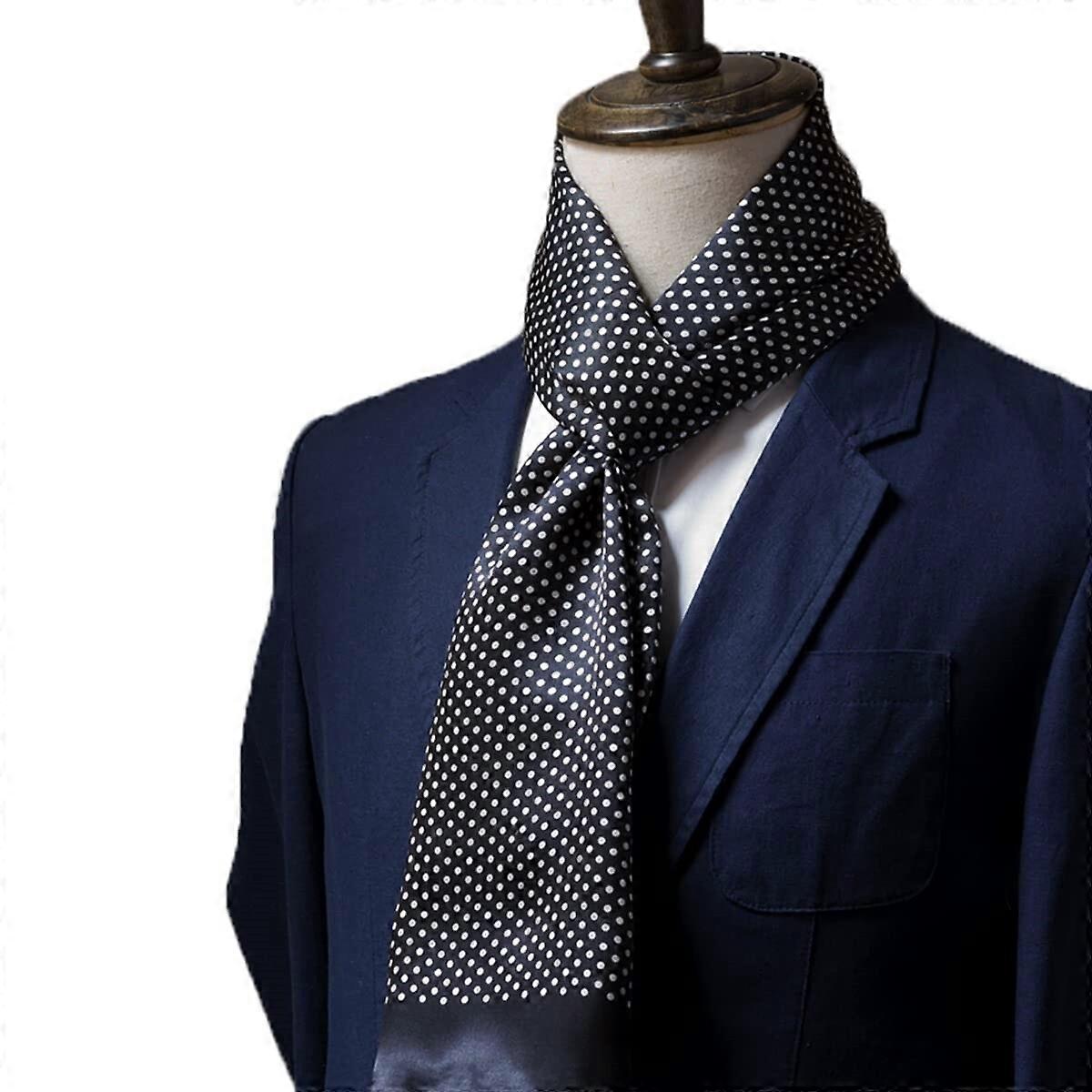 Men 100 Pure Silk Polka Dot Scarf Double Layer Long Neckerchief Black