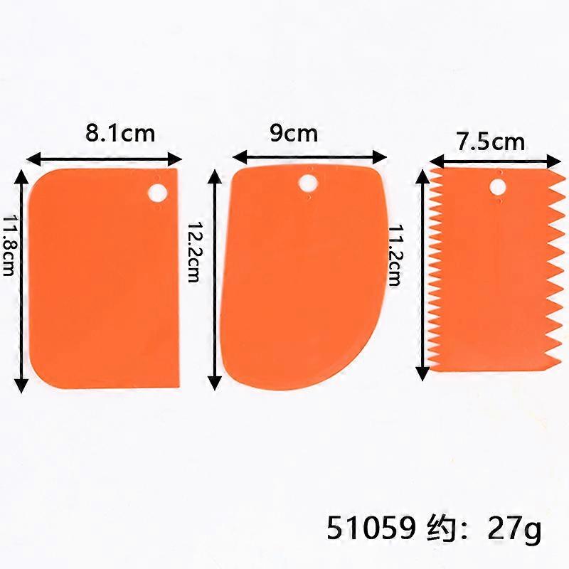3-piece set of plastic flour scrapers for dough, cakes, and butter; for home baking.