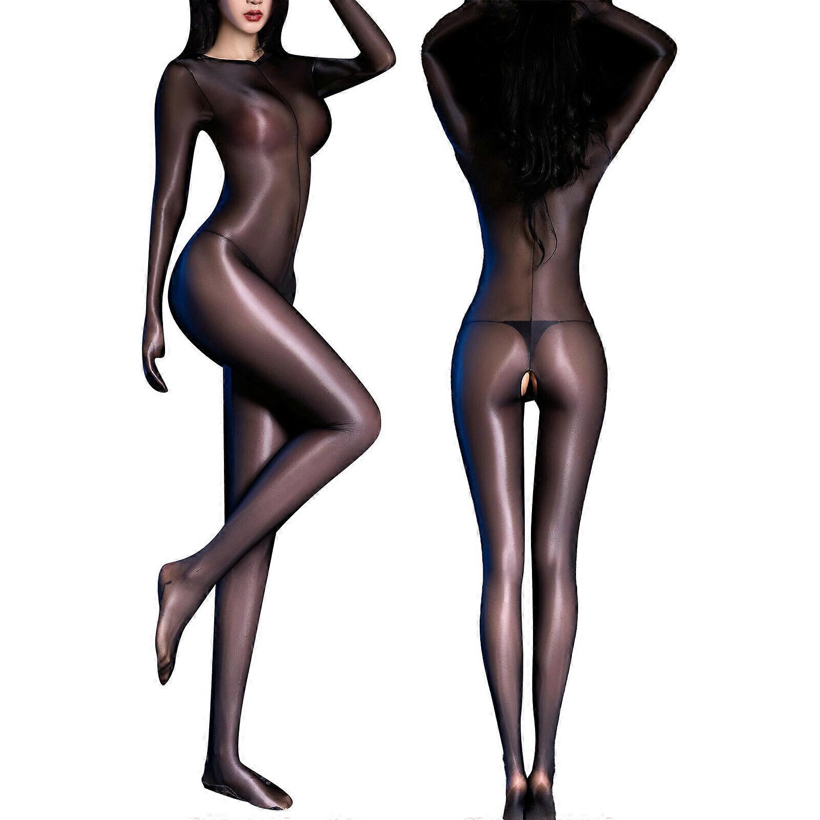 Women's Sheer Shiny Bodystocking Smooth Stockings Full Body Jumpsuit Lingerie