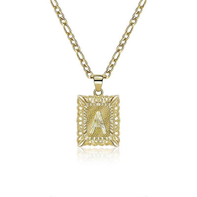 GGIRL 18K Gold Plated Initial Letter Pendant Necklace for Men Womens Square Capital Monogram Necklace Alhpabets from A-Z Figaro Chain Neckla