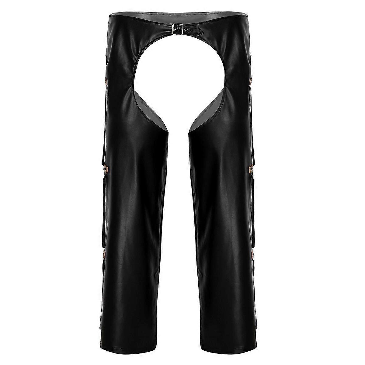 Black Men Faux Leather Classic Motorcycle Chaps Loose Long Pants Fringed Trouser