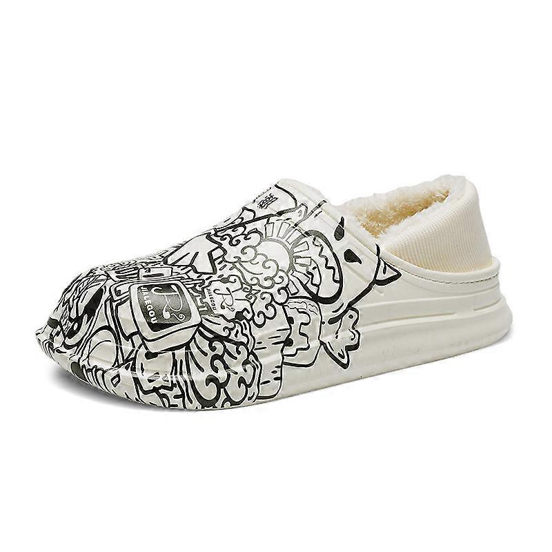 Men's indoor cotton slippers, fleece-lined warm slippers, stylish closed-toe slip-on cartoon cotton shoes.
