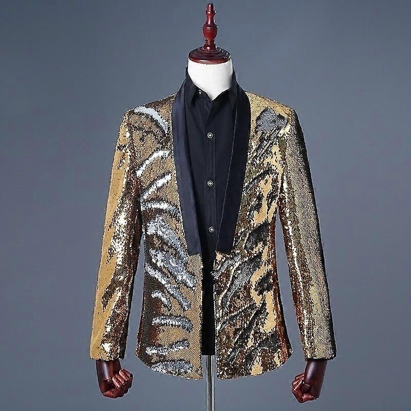 Men Glitter Perform Dress Suit Reversible Two Tone Sequins Jacket Blazer Outfit