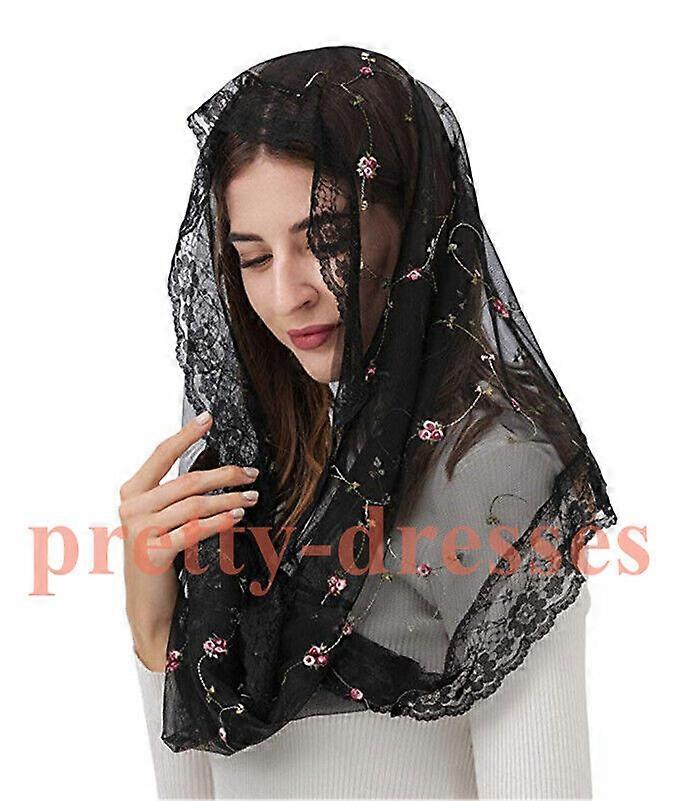 Lace Mantilla Catholic for Church Chapel Veils Head Scarf Embroidery Floral