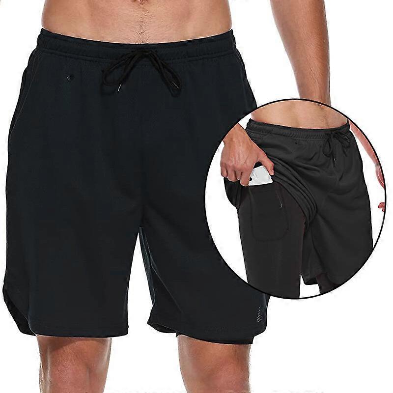 2-in-1 Men Sports Training Running Bodybuilding Workout Shorts Gym Pants Fitness