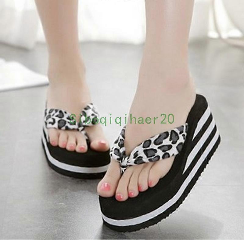 Womens Casual Platform Wedge Heel Flip Flops Slip On Slippers Summer Beach Shoes