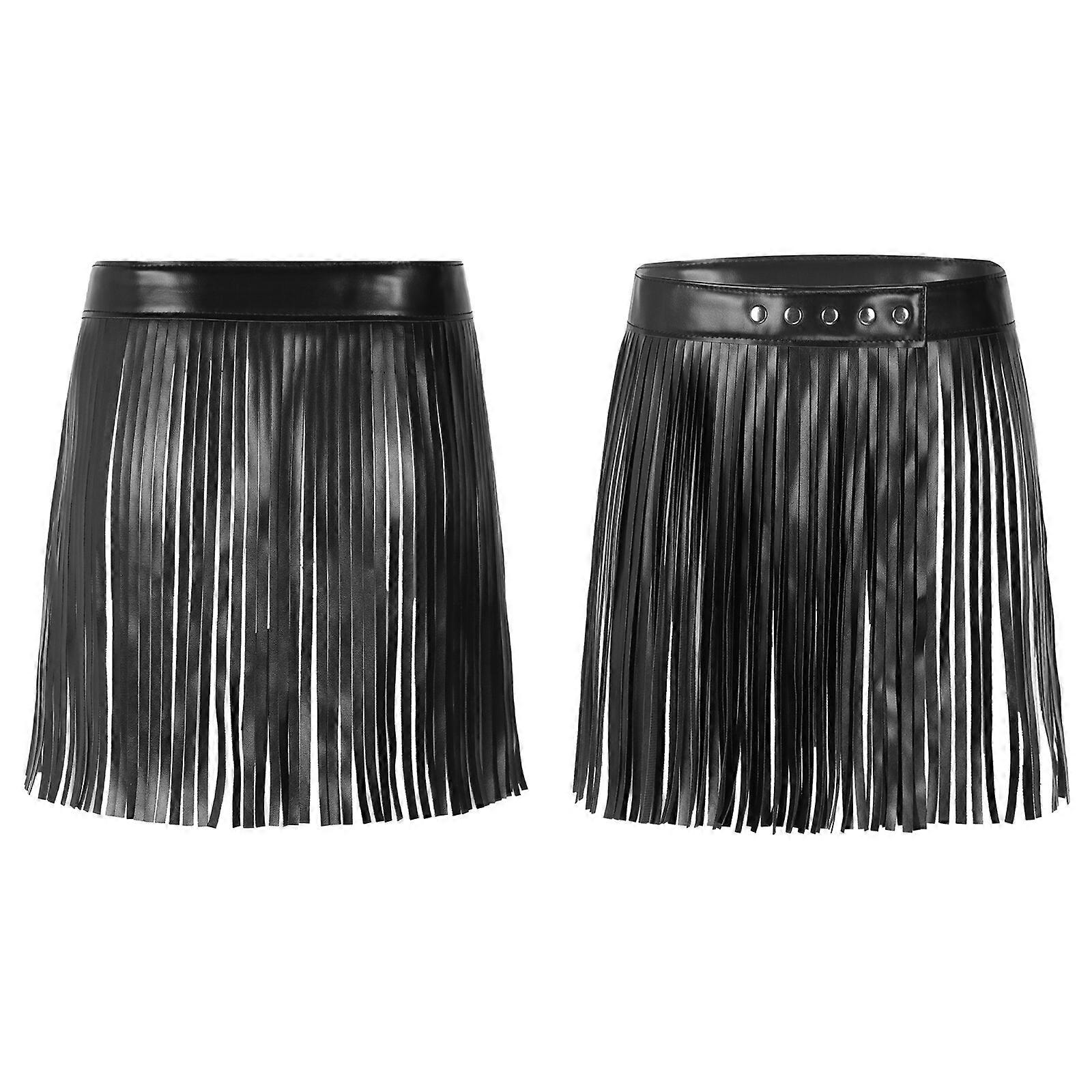Women's Faux Leather Fringe Tassel Skirt Belt Vintage Adjustable for Party Dance