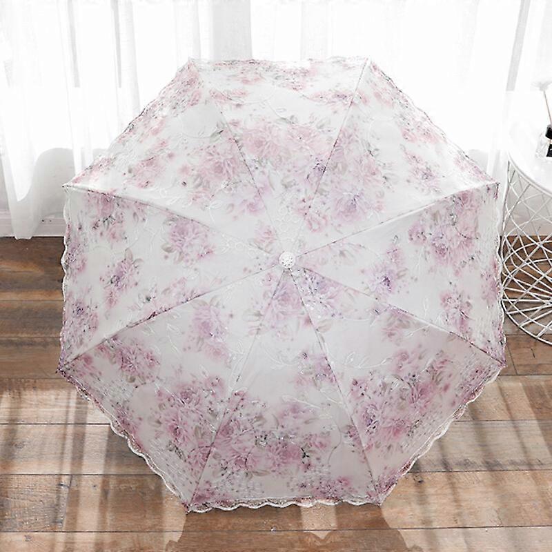 Flower Lace Umbrella Anti-UV Waterproof 3Folding Embroidery Parasol Wedding Prom