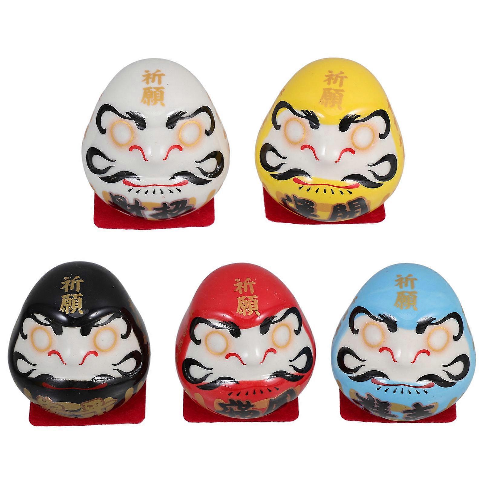 Ceramic Japanese Dharma Figurine for Decoration Set of 5 Small Statues