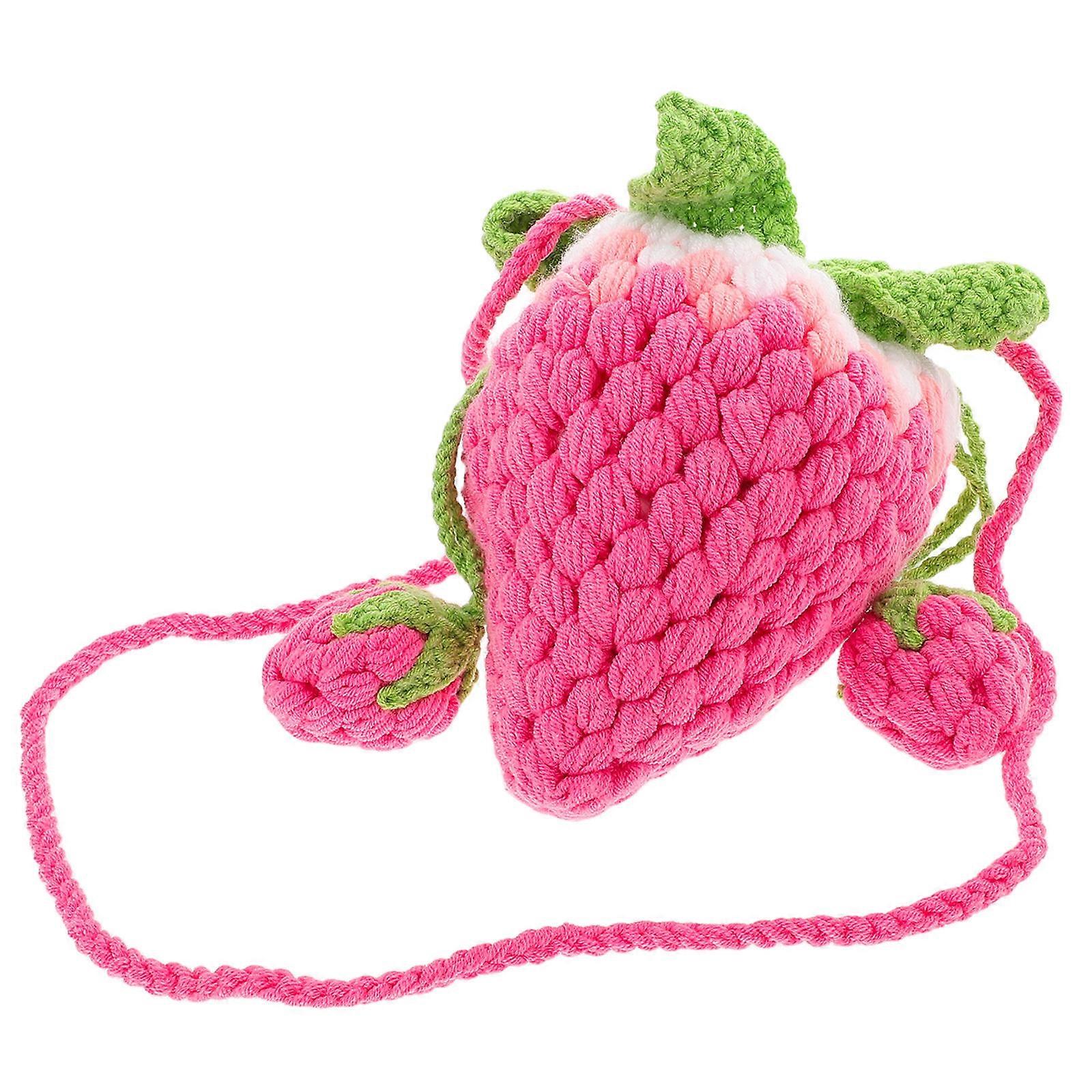 Rosy Strawberry Crossbody Bag for Storage Handmade Woolen Yarn Soft Shoulder Purse