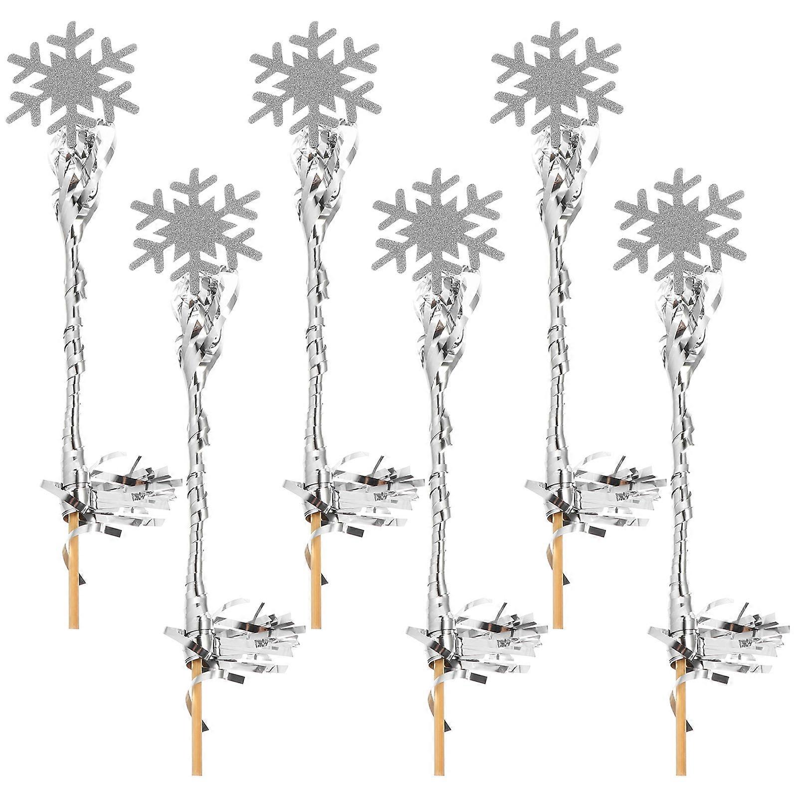 Silver Snowflake Fairy Wands Decorative Party Props for Wedding 6Pcs