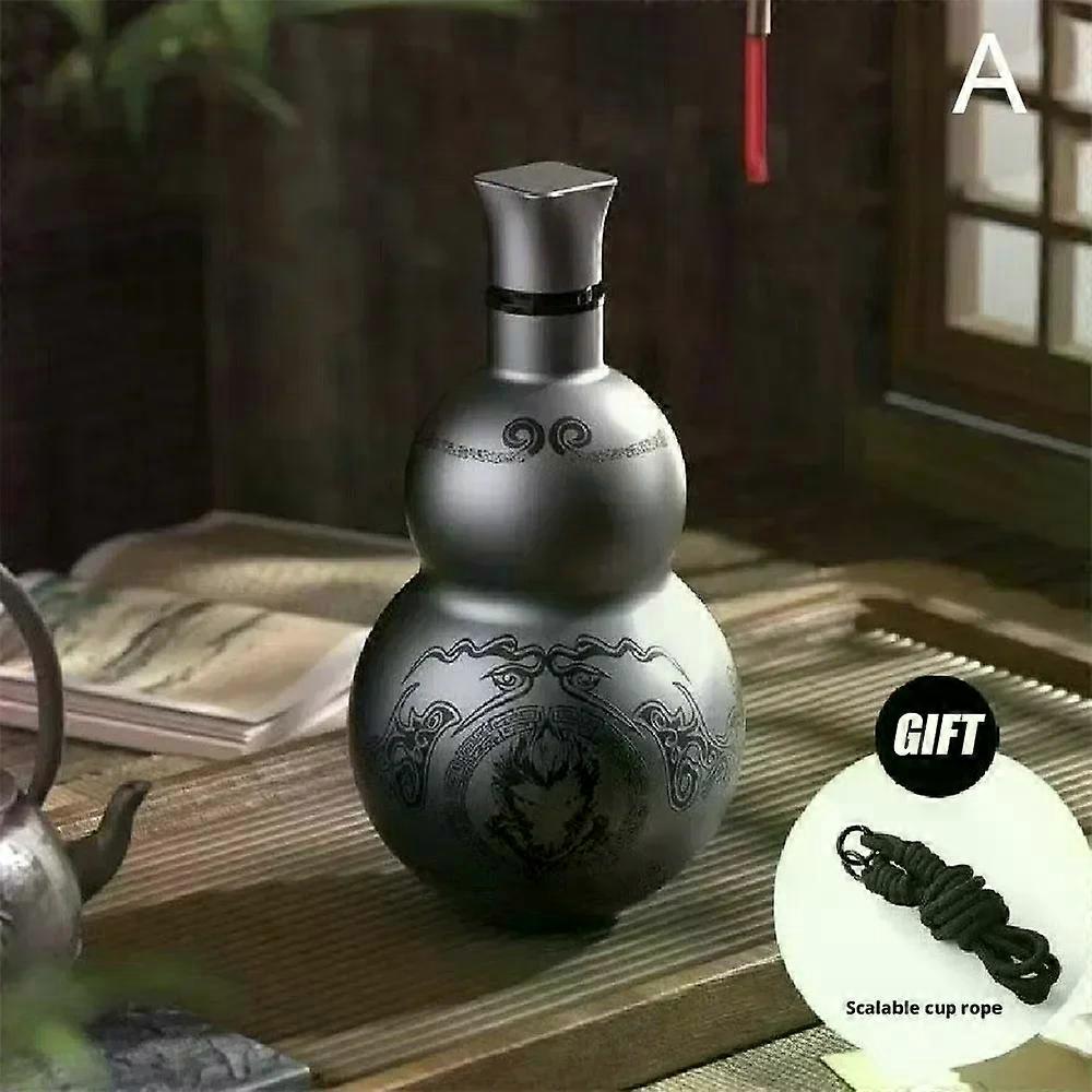 Portable Wukong Gourd Water Bottle �C 500ml 304 Stainless Steel Insulated Cup, Black Game Role-Playing Decoration