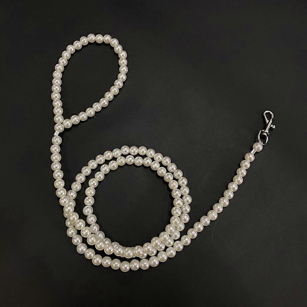 Steel Wire Dog Leash, Handmade Luxury Pearls Pet Chain for Walking Outdoor Collars Rope for Small Dogs and Cats, 120cm, 4ft