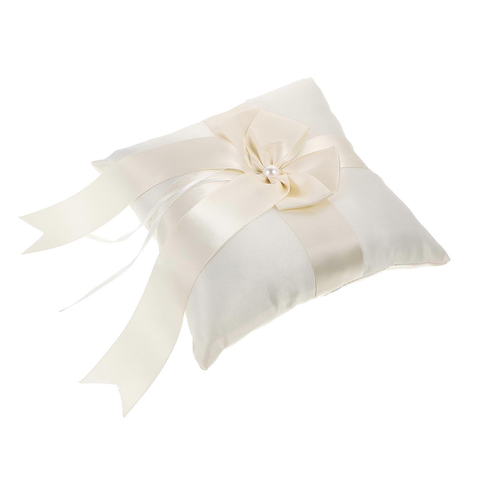 White Wedding Ring Pillow for Ceremony with Bowknot Ribbon Elegant Cushion