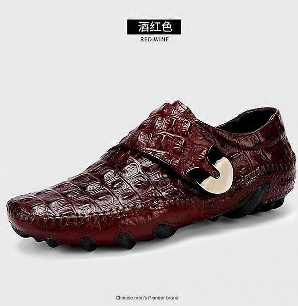 Retro Men Real Leather Shoes Print Slip on Business Driving Soft Comfy