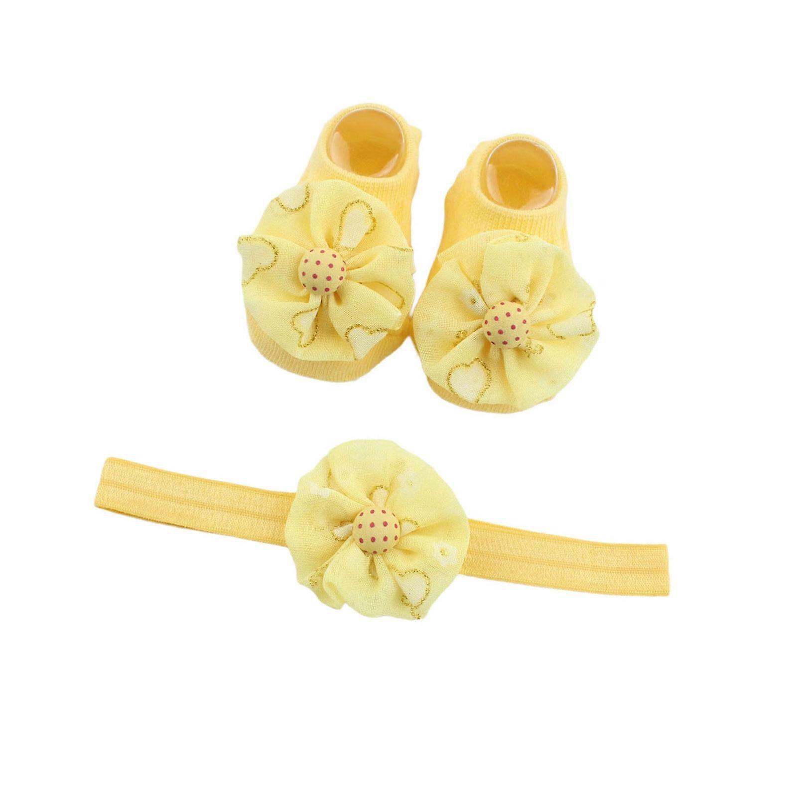Baby Decorative Floral Hair Bands with Socks for 0-6 Month Baby Flower Pattern Infant Girl Headband Headwear Hairbands Multicolor