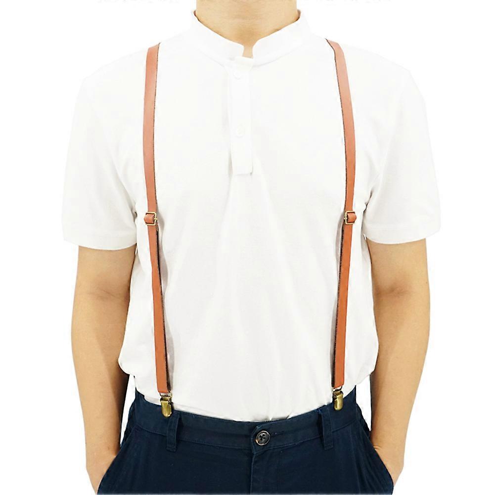 Y Back Stretch Suspenders For Men and Women Adjustable Metal Clip Split Leather