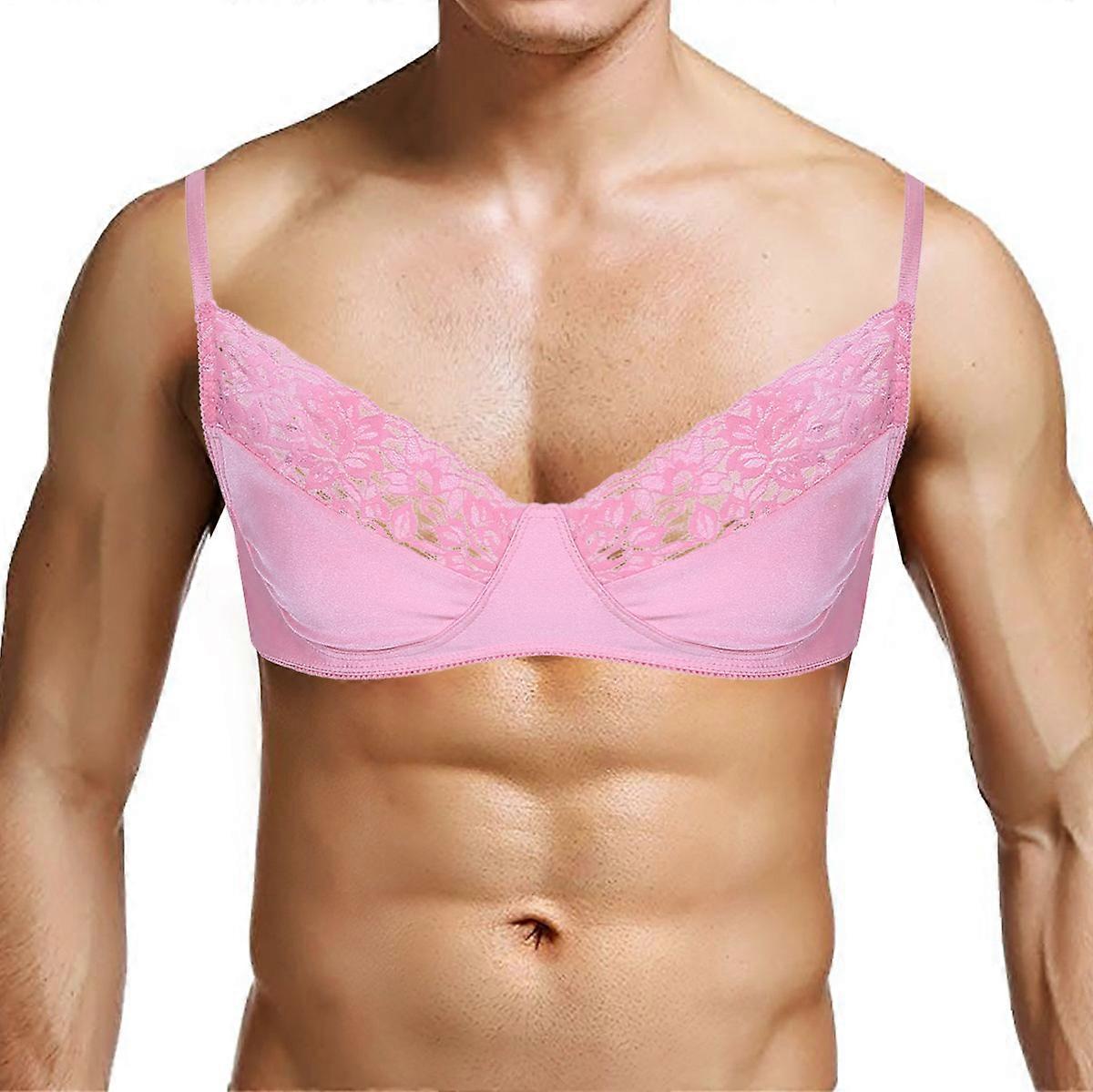 Men's Sissy Satin Lace Bra Lingerie Bralette Wire-free Bra Top Adjustable Straps