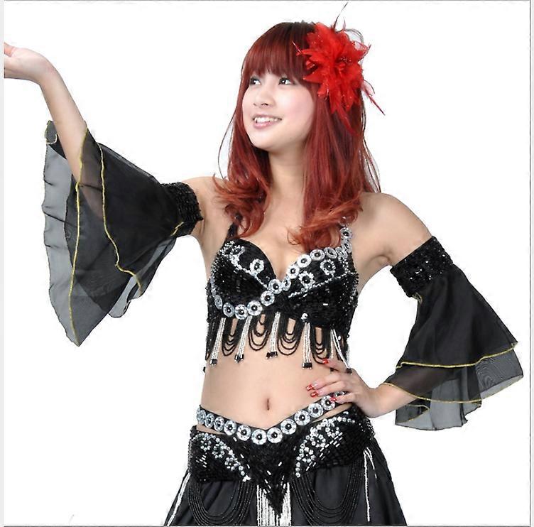 one pair Double Layers Chiffon Arm Sleeves Cuffs Shining Sequins Belly Dancewear