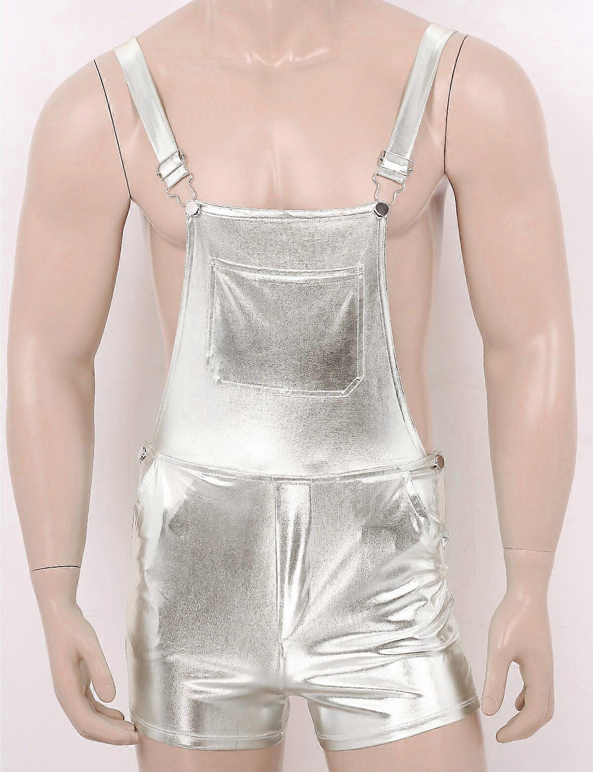 Mens Shorts Overalls Suspender Trousers Bib Pants Jumpsuits Metallic Fancy Dress
