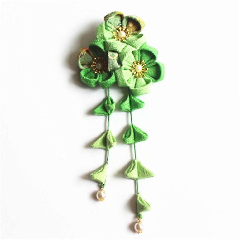 Japanese Style Green Sakura Hair Clip for Kimono Accessory Tassel Girl Hairpin