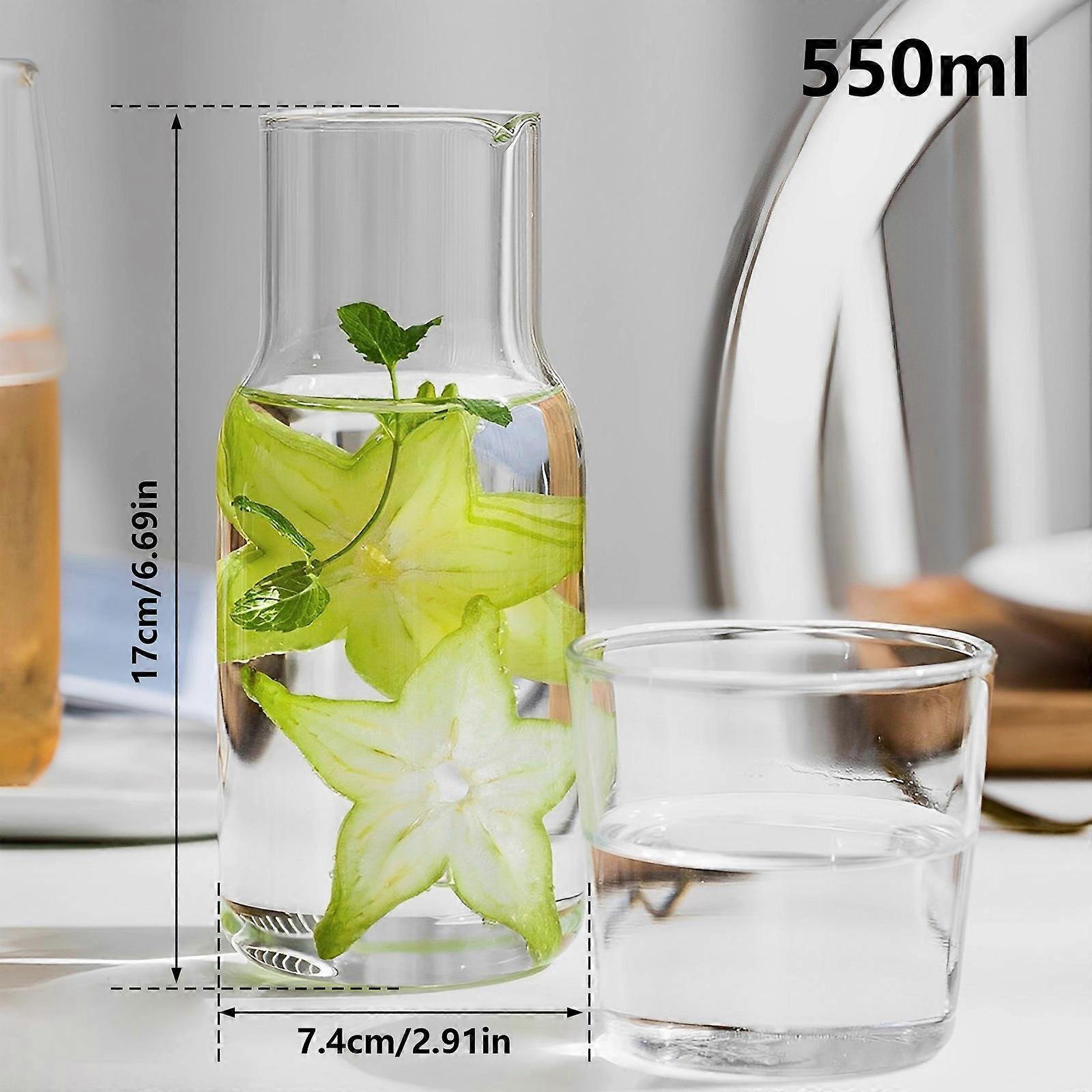 Glass Water Bottle Set 550ML/600ML Glass Bedside Water Carafe Bottle With Glass Cup Drinking Pitcher for Milk Beverage Tea