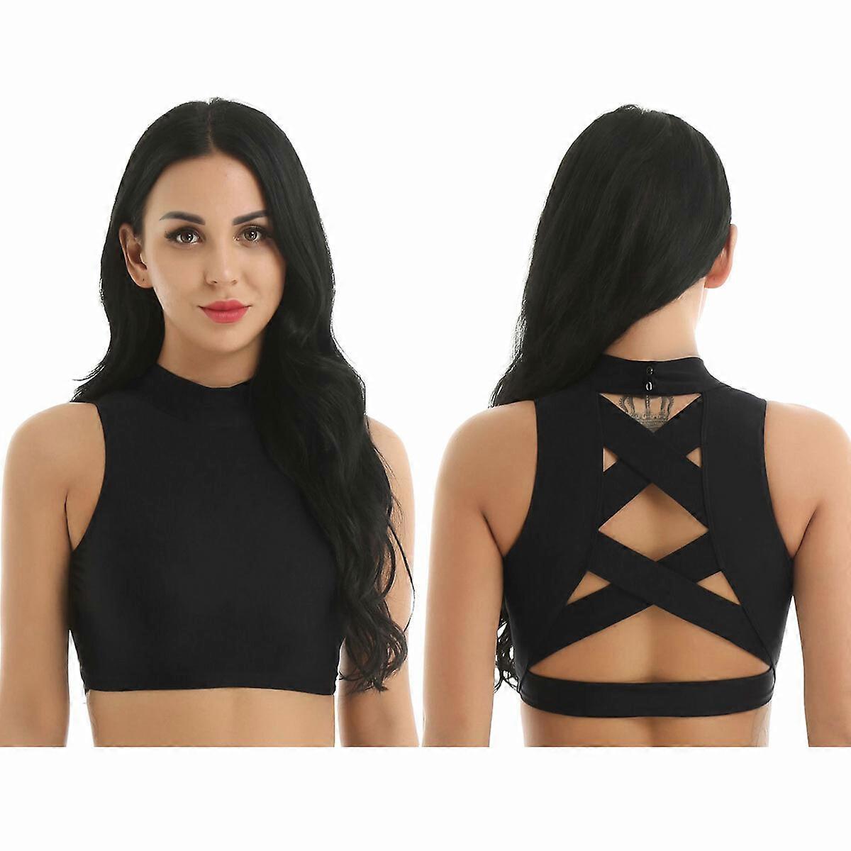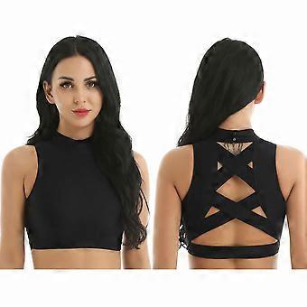 Women's Sleeveless Mock Neck Criss Cross Back Yoga Workout Sports Bra Crop Tops