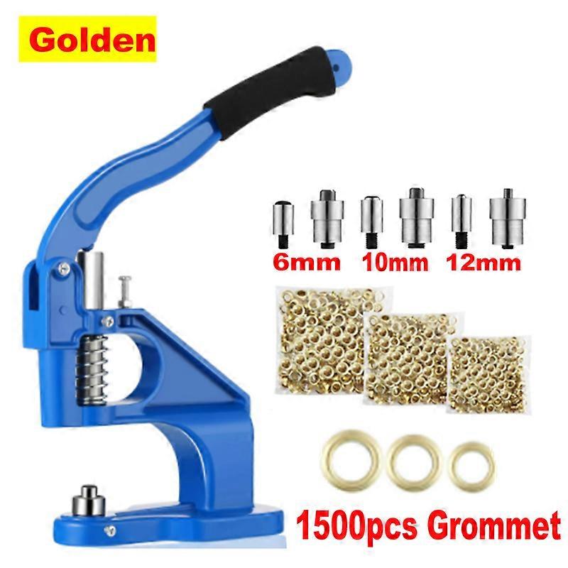 Manual Grommet Eyelet Machine DIY Hand Press Leathercraft Sewing Pressing Punch Tool with 6/10/12mm Dies+1500pcs Grommets