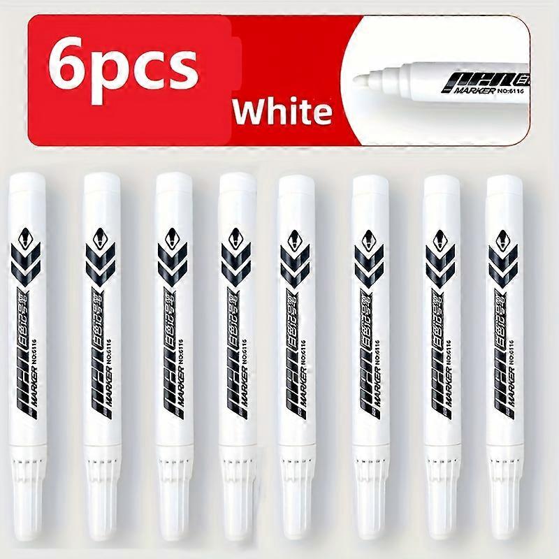 6pcs White Marker Set - High-Quality Smudge-Proof Oil-Based Ink, Medium Tip for Plastic, Glass & Metal Surfaces,Permanent Marker