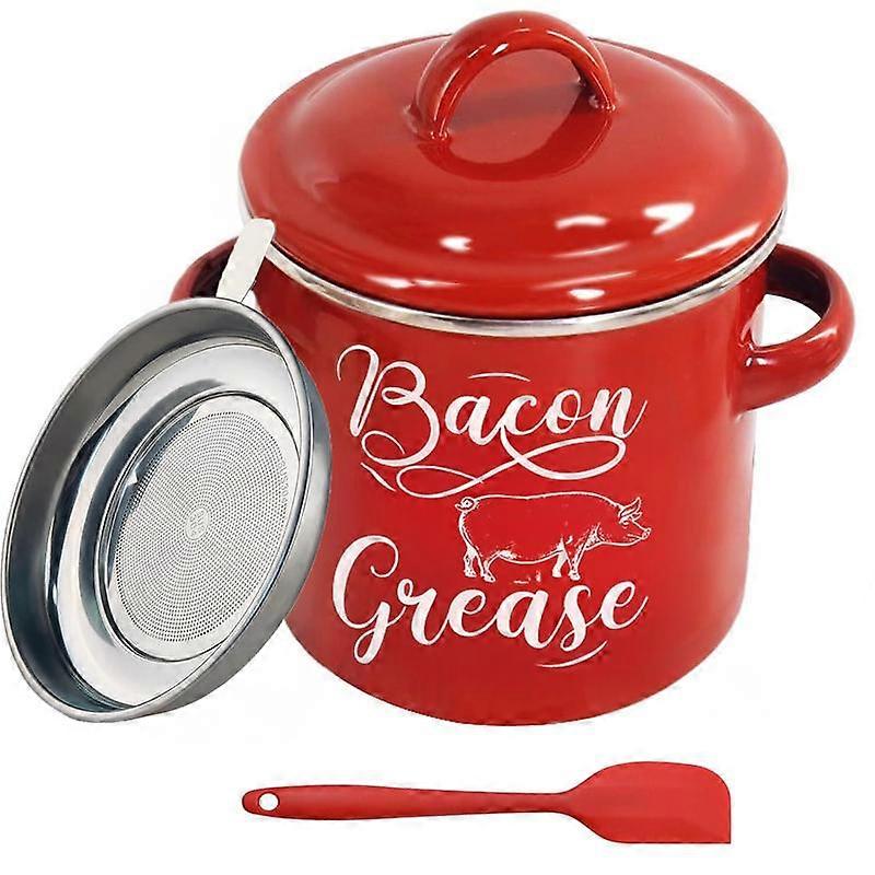 46 0Z Bacon Grease Container with Strainer -1.3L Large Capacity, With Silicone Spatula, Enamel Bacon Grease Keeper for Bacon Drippings, Farm