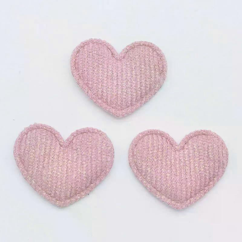 50Pcs/lot 35*30mm Padded Glitter Cloth Heart Appliques for DIY Hat Clothes Leggings Sewing Supplies Headwear Decor Patches