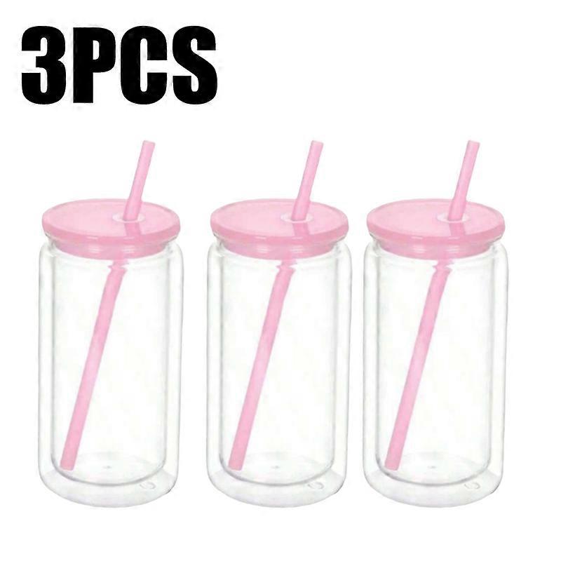 1/3/5PC 16OZ Double Wall Snowglobe Tumbler with Pre-Drilled Hole Recomable Drinks Cups With Straw Break-Resistant Mason Jar Cups