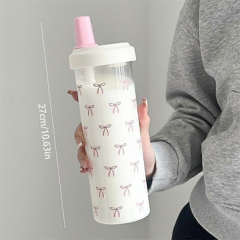 500/700ML Straw Water Bottle With Lid Bow Mug Coffee Milk Tea Plastic Cup For Outdoor School Drinking Water Bottle Girls Gift