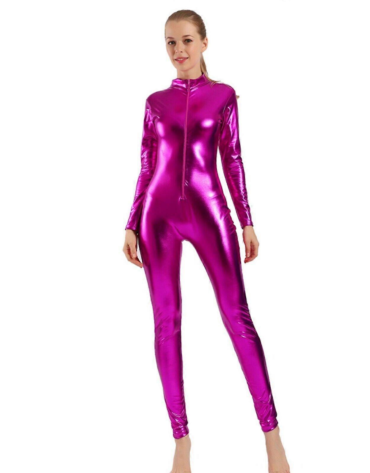 New Women Shiny One-Piece Jumpsuits Bodysuit Spandex Long Sleeve Costumes Slim