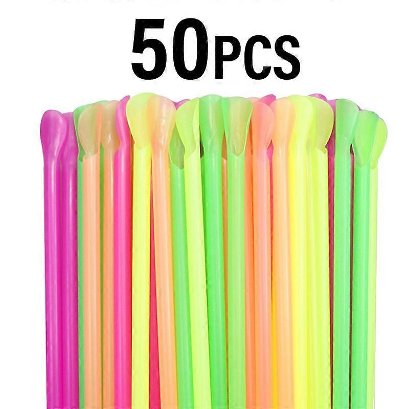 50/100/500Pcs Beverage Spoon Straw Summer Milkshape Smoothie Ice Cream Multicolored Straw Birthday Party Drinkware Accessories