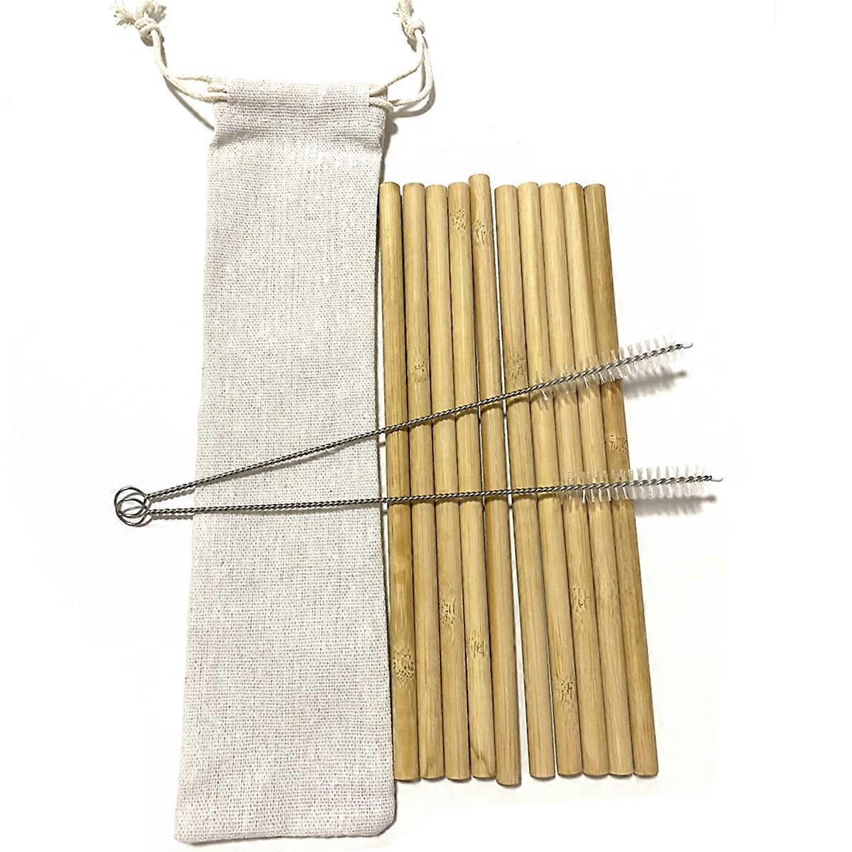 10Pcs Natural Bamboo Straw Reusable Drinking Straws with Case Biodegradable Eco-friendly Bamboo Straws for Cocktail Bar Drinks