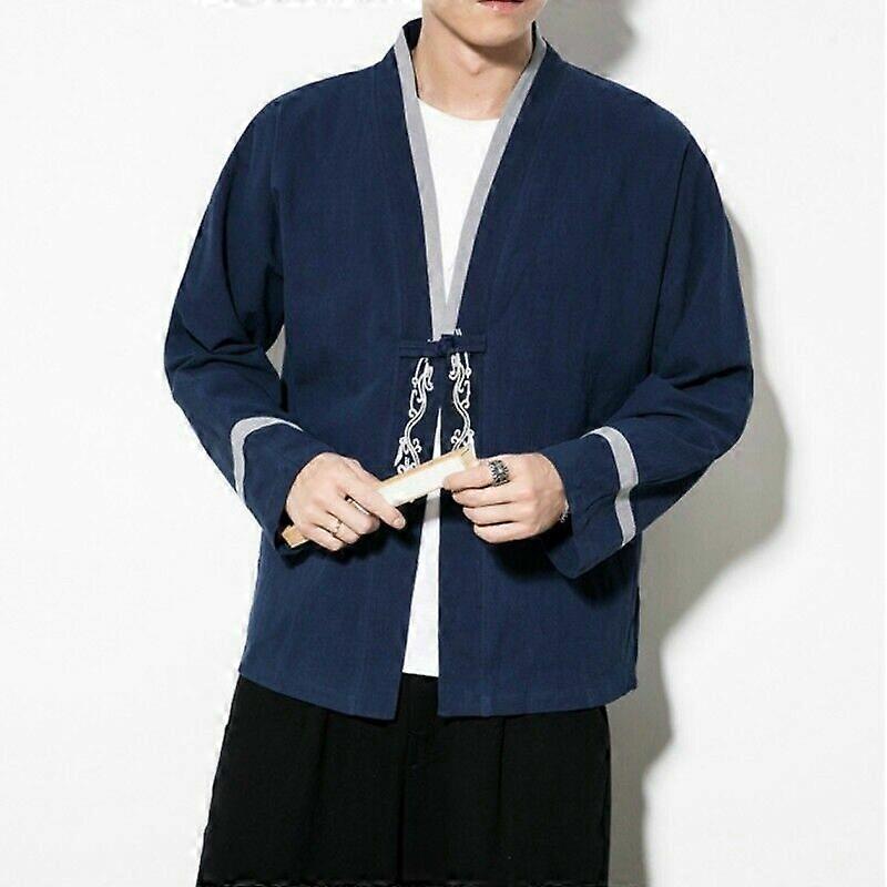 Men Embroidery Jacket Kimono Coat Ethnic Cardigan Outwear Retro Chinese Button