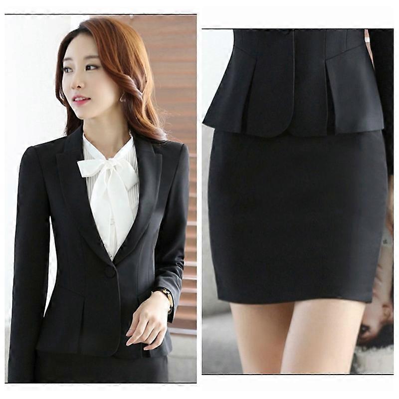Lady Suit 2PCS Jacket+Skirt Sets Formal Ruffle Slim Fit OL Office Work Wear Soft