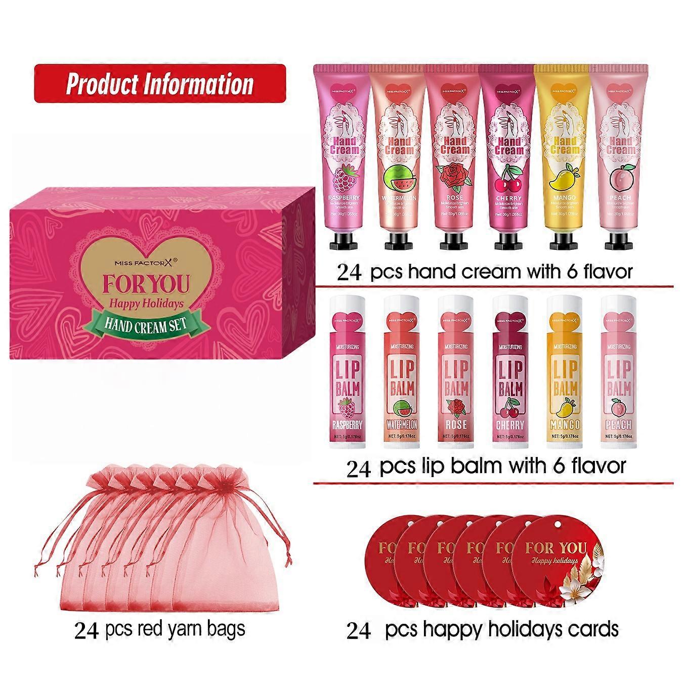 96pcs gift set hand cream and lip balm, with thank you card and organza bag, suitable for wedding, ladies party