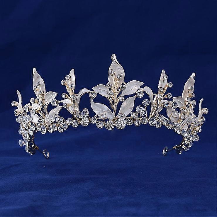 5.5cm Tall Gold Leaf Crystal Wedding Queen Princess Prom Tiara Crown For Women