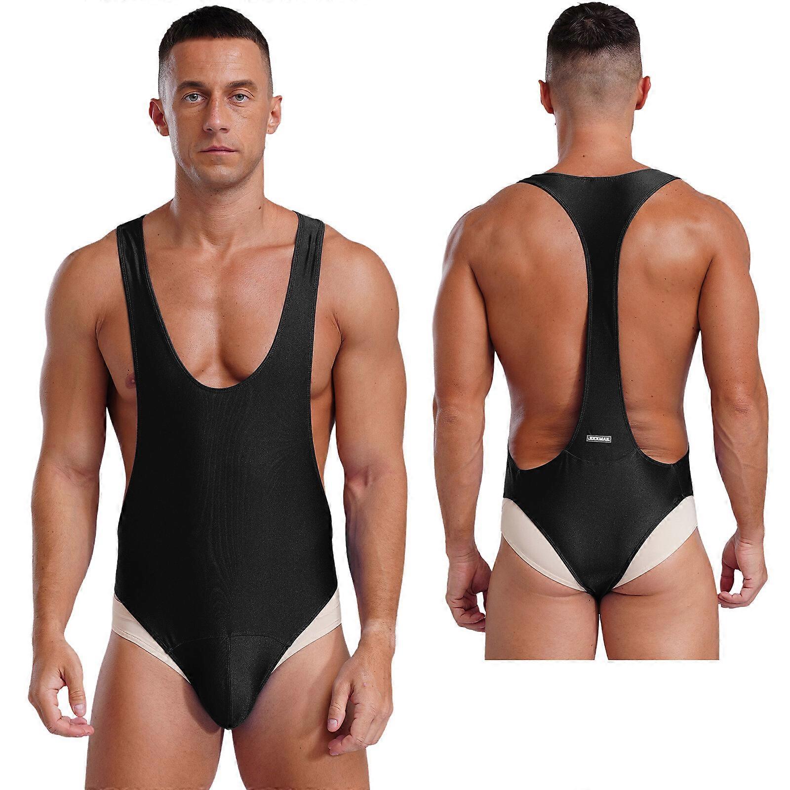 Men's One-Piece Glossy Bodysuit High Cut Thongs Sleeveless Leotard Activewear
