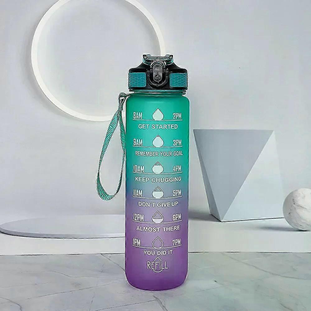 1/2Pcs 1000ml Sports Water Bottle with Time Scale Gradient Color Leakproof Gym Water Bottle for Outdoor Travel Fitness Cycling