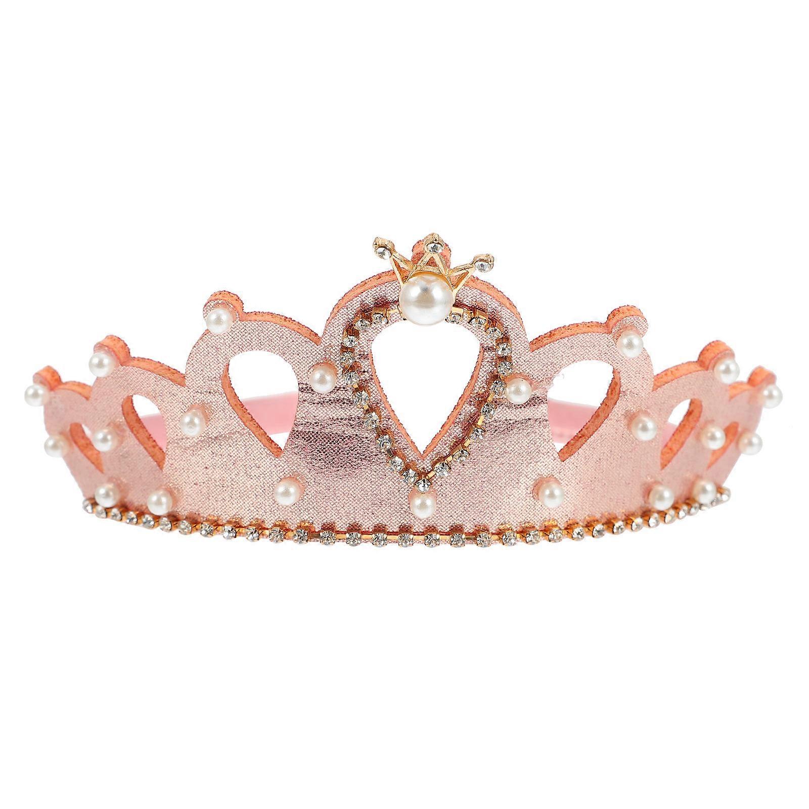Adorable Pink Rhinestone Crown Headband for Girls Perfect for Birthday Decor and Photos 6.5 Inches