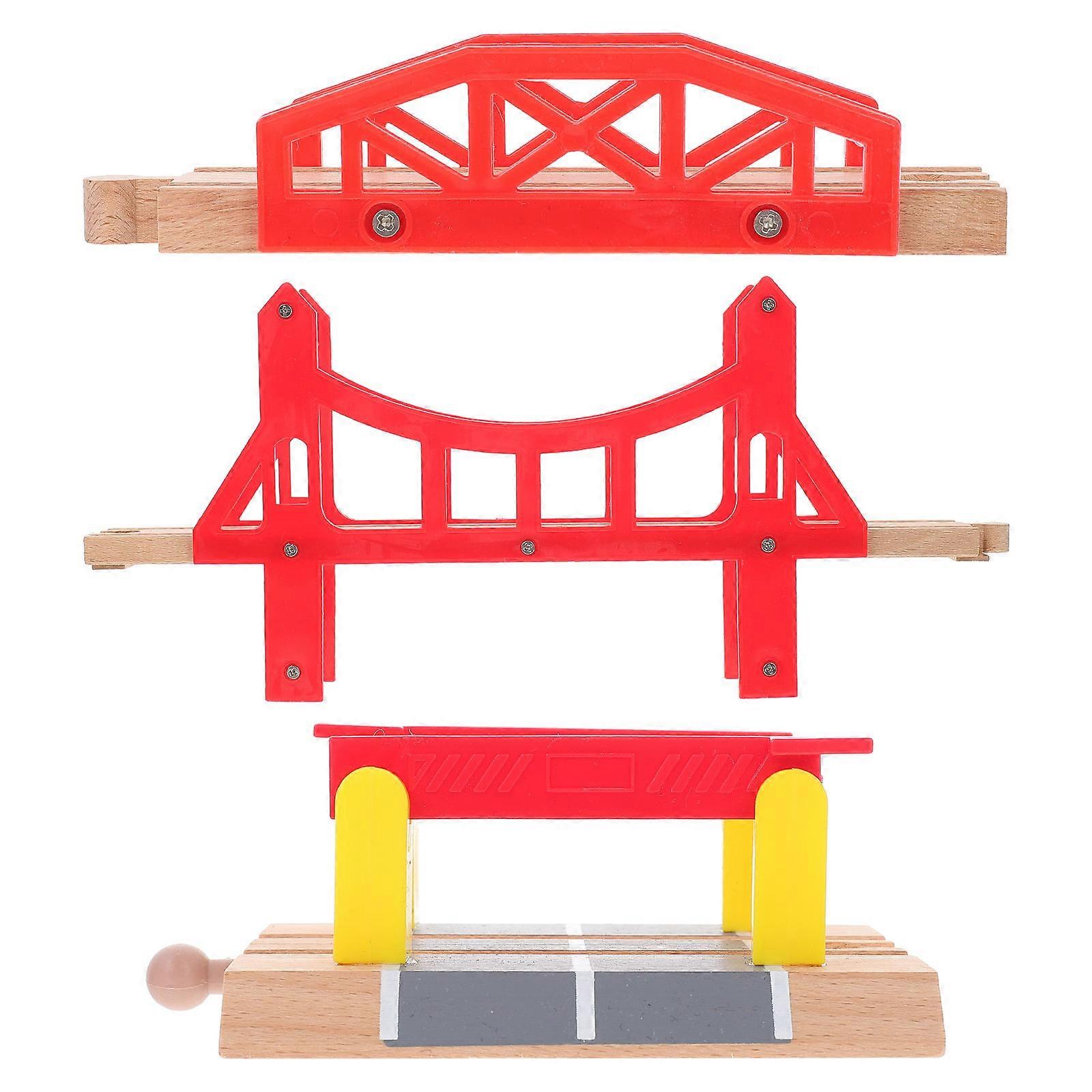 Wooden Train Track Bridge Toys for Kids 3Pcs Railway Expansion Accessories
