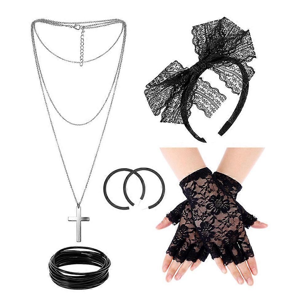 Women Lace Gloves Lace Gloves for Dancing Party 5Sets Black Costume