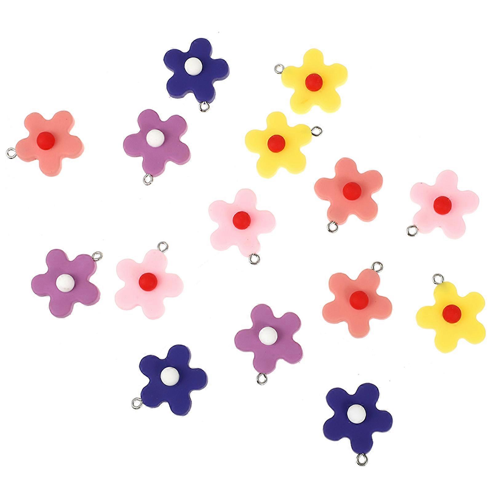 15pcs Colorful Flower Pendants with Hanging Hole for Pretty DIY Jewelry Accessories