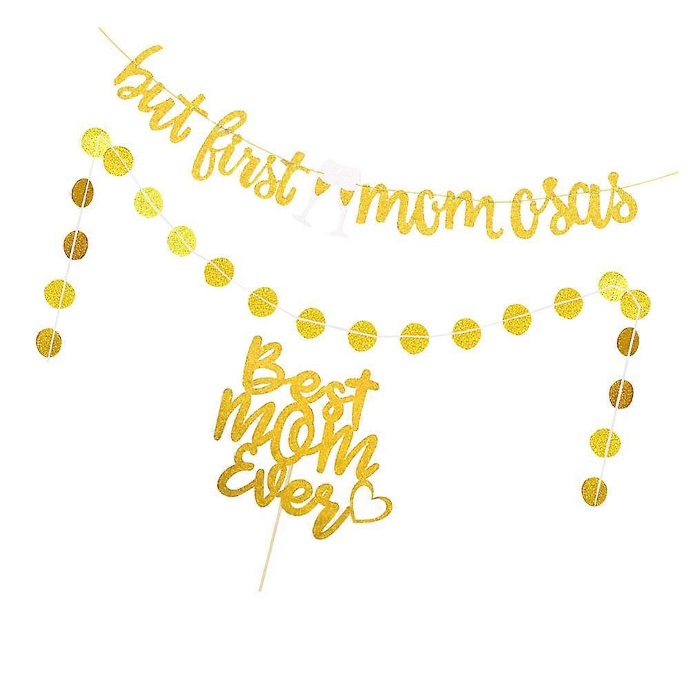 Mother's Day Banners Cake Inserting Card for Decor 1Set Golden Paper Wood